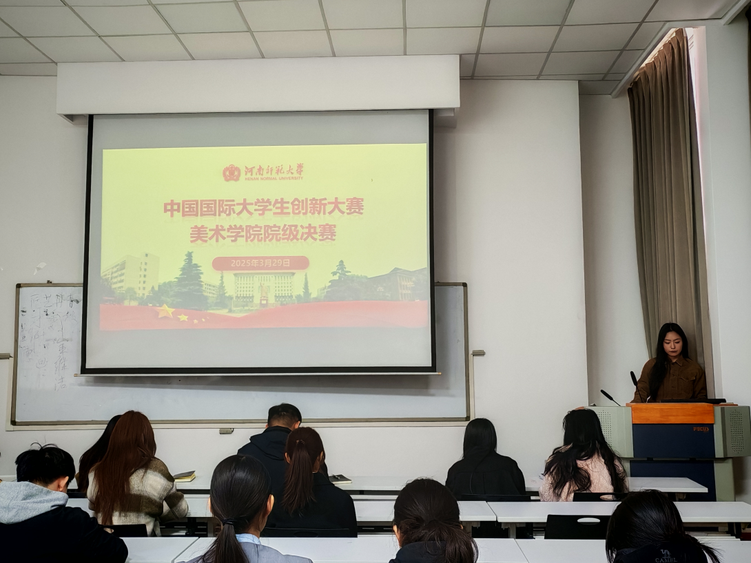 为激发学生创新潜能,培养实践能力,提升自我认识,3月29日下午,美术学院在崇美楼一楼C103成功举办中国国际大学生创新大赛院赛决赛,本次比赛由辅导员黄清主持,各年级辅导员和全体参赛选手参加。