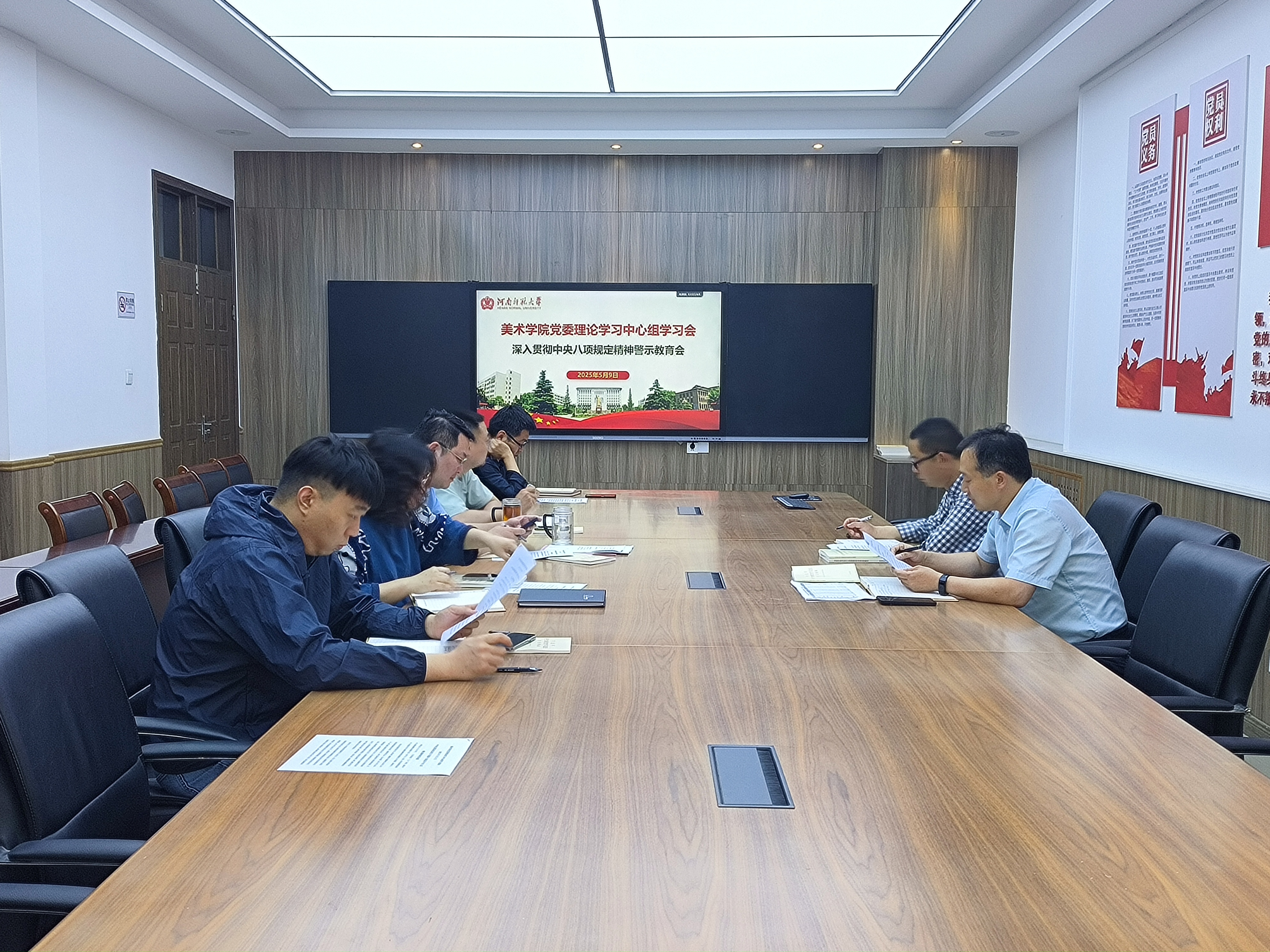 5月9日上午,美术学院在办公楼三楼党员活动室召开深入贯彻中央八项规定精神警示教育会,学院党委委员参加。会议由院党委书记华锋主持。