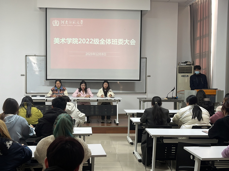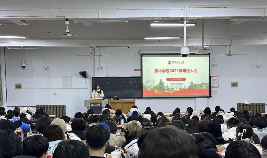 2023年12月14日晚,河南师范大学美术学院2023级本科生年级大会在新554阶梯教室101召开,此次大会由2023级...