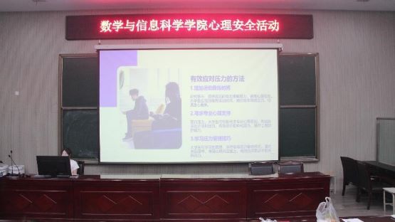 为进一步宣传普及心理健康知识,加强大学生心理健康教育,促进学生身心健康发展,6月17日晚,数学与信息科学学院在数学楼报告厅举办“舒心解压,悦己释怀”心理安全讲座。学院相关负责人、宿舍代表踊跃参与。