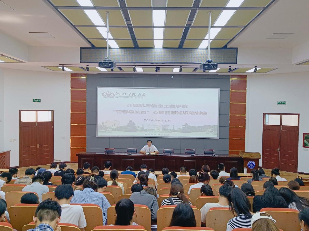 为普及心理健康知识,提升青春导航员服务质量,9月6日下午,计算机与信息工程学院在学院217报告厅举办2024级新生“青春导航员”心理健康知识专题培训,学院相关负责人、全体专职辅导员、152名青春导航员参加会议。2022级辅导员皇甫晓阳担任主讲,会议由院团委书记敦洁主持。