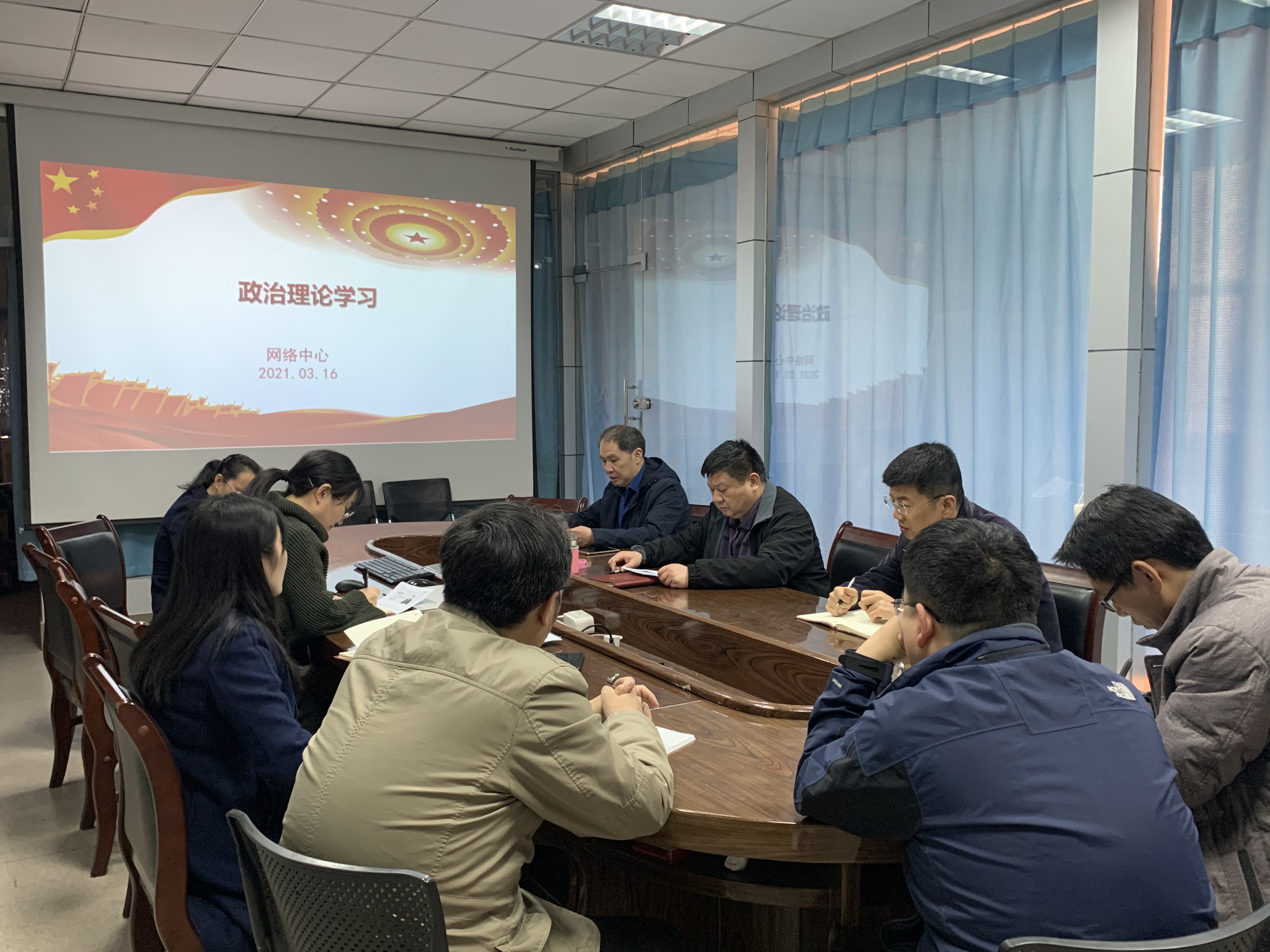 3月16日下午,网络中心党支部组织全体教职工在会议室召开会议,集中学习习近平总书记在两会期间讲话精神和2021年《政府工作报告》并观看了《忠诚、干净、担当》视频。会议由支部书记朱守宏主持。