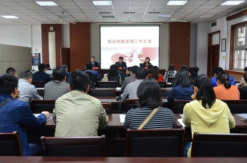 为进一步规范和加强我校综合档案管理,提高档案员业务水平,推进档案管理规范化、系统化、完整化和信息化建设,4月17日下午,档案馆召开2017年度综合档案管理工作交流会。全校专职及基层档案员49人参加了交流会。 档案馆馆长赵启才就档案工作的时代背景及其对学校事业发展的重要性进行了简短的动员。副研究馆员曾飞舟就档案工作特点、文书档案的管理和整理相关要求等三个方面与各单位的基层档案员进行了业务交流,并针对当前我校文件归档要求、常用表格使用、档案装订方法等方面为大家进行了详细的阐述。曾飞舟表示,目前档案工作要点是进一步加强档案信息化建设,加强档案共建共享,开展原生电子文件接收,传统档案数字化,加快实现双载体归档。副馆长李红星做了“践岗履职,勇于担当,建功兰台”的总结发言。他强调,档案事业是师大人共同的事业,需要大家齐心协力,功在当下,利在千秋。 此次交流会既具有一定的理论深度,又具有现实的指导性、针对性和可操作性,解答了“为什么存档?为谁存档?存什么档?如何存档?”的问题,使与会人员受益匪浅。 (档案馆 张 亮/文 罗开江/图)