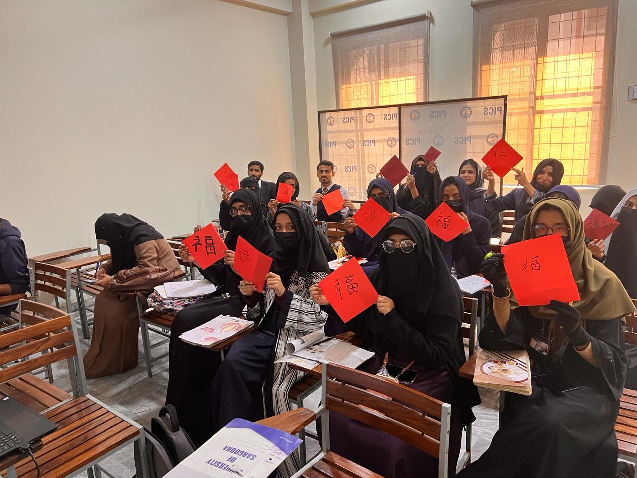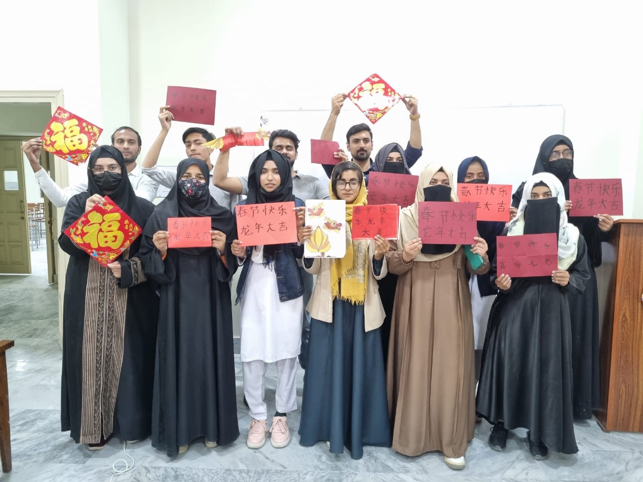 2月20日-22日,为弘扬中国传统节日文化,我校巴基斯坦萨戈达大学孔子学院 “金龙迎福”2024年中国春节文化系列活动圆满落下帷幕,活动以线上线下结合的方式进行。萨戈达大学中国研究中心主任、孔子学院外方院长穆罕默德·伊凡,我校国际合作与交流处处长赵扬,孔子学院中方院长陈运香,萨戈达大学孔子学院学生和中方教师代表,以及萨戈达大学曾在中国留学的教师参加了活动。