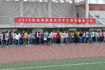 为了贯彻落实2013年《国家学生体质健康标准》测试和上报工作,为了进一步了解我校学生体质加强我校体育工作建设,9月11日始,河南师范大学学生体质健康测试工作正式展开,全校3万余名学生以学院为单位分批次参加了测试。