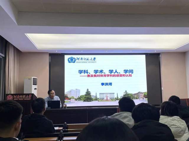 李洪河教授从哲学观、历史观出发,结合历史背景,深入剖析时代体育热点,对体育学科进行了多角度分析,他指出:体育学科大有可为,鼓励学生跨学科开展学术研究;在健康中国国家战略引领下,体育研究应坚持“扎根本土”、坚持“学科引领”、坚持“兼容并包”、坚持“紧扣实践”等价值取向;他结合丰富的学术研究实践为学生剖析了学术研究的八个阶段。最后,他从人生三境界入题,勉励同学们要有家国情怀,要勇于创新,要努力奋斗,力争为自己的研究生学习生涯画上圆满的句号。李教授的精彩讲授不时引起台下师生的掌声和共鸣。