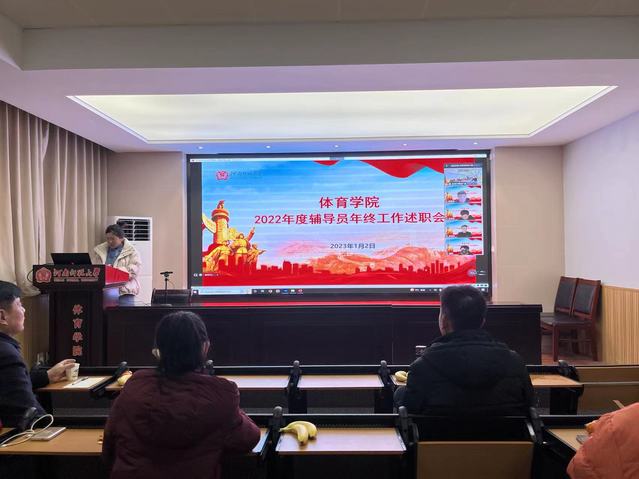 为切实加强辅导员队伍建设,总结交流年度学生工作,凝练品牌特色,促进辅导员专业化、职业化发展,1月2日下午,体育学院在学院东区114会议室通过线上线下相结合的方式举行2022年度辅导员工作述职会,学院党委书记王允、院长岳贤锋、副书记王芳以及全体专兼辅导员参加此次会议。