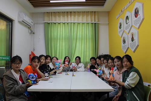活动中,同学们挑选心仪的娃娃,进行涂色DIY,将纯白单调的娃娃,绘上缤纷的色彩。绘制的娃娃通过色彩与情感的搭配,让娃娃不只是一个简单的作品,而是以情感为载体,投射出大学生潜意识层面的信息,使其潜意识的内容视觉化。帮助大学生抒发情绪、认识自我、调整心态,是良好的心理辅导方式。随着作品初具雏形,成员们也愈发热烈地交流起来,现场一片欢声笑语。有的同学索性多人合作,共同创作与交流,结交了新朋友,增进了师生间的情谊。