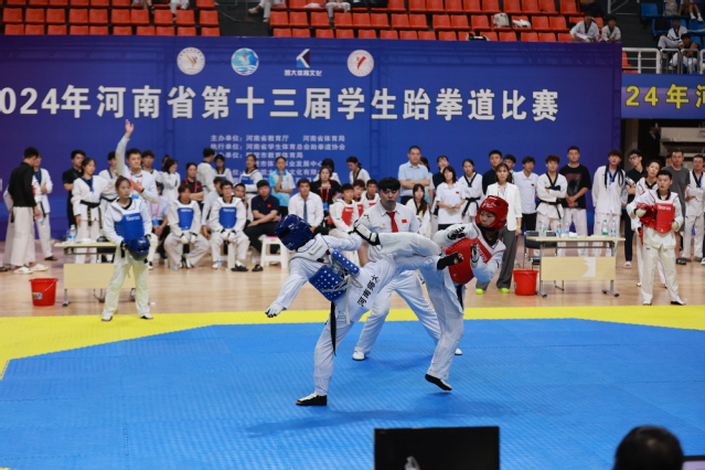 2024年河南省第十三届学生跆拳道比赛(大学生组)于2024年7月13日-17日在鹤壁千鹤之舞体育馆开赛,经过5天的激烈角逐,我校跆拳道代表队获得17金5银3铜2个第五名的优异成绩。
