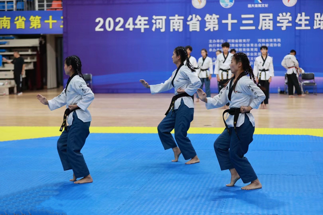 2024年河南省第十三届学生跆拳道比赛(大学生组)由河南省教育厅主办,河南省学生体育总会跆拳道协会执行,鹤壁市教育体育局承办。共有来自河南大学、郑州大学等63所高校749名教练员、运动员参赛。我校跆拳道队由孟国正领队,司幸伟、于益民、黄明圣任教练员,共23名运动员参加了竞技和品势项目的角逐,最终计算机与信息工程学院田欣玥获甲组女子个人竞技-49KG金牌,化学化工学院关家慧获甲组女子个人竞技-57KG铜牌,电子与电气工程学院陈一诺、外国语学院买嘉骐分获甲组女子个人竞技-46KG、男子个人竞技-80KG第五名。国际教育学院苗菁、崔文瀚、张中旭、李晗乐、张启聪分获乙组女子个人竞技-53KG、男子个人竞技+87KG、男子个人品势、女子个人品势、混双品势金牌,男子个人竞技-80KG银牌。体育学院张烁宇、陈义合、王惠宇、宋佳星分获乙组男子个人竞技-74KG金牌,-58KG、-63KG银牌、-68KG铜牌,许翔宇、王奕丹、叶嘉怡、郭文迪分获丙组个人竞技女子-46KG、-49KG、-53KG金牌,男子个人竞技-80KG铜牌。体育学院研究生卢鑫、代灿宇、田海微分获甲组个人竞技男子-87KG、+87KG金牌、女子乙组个人品势银牌。陈义合、宋佳星、张烁宇获男子乙组团体竞技金牌,王奕丹、叶嘉怡获女子丙组团体竞技金牌,张中旭、申金辉、武登辉获男子乙组团体品势金牌、田海微、李晗乐、杨静君获女子乙组团体品势金牌。我校再次被省教育厅评为“河南省跆拳道示范校”。