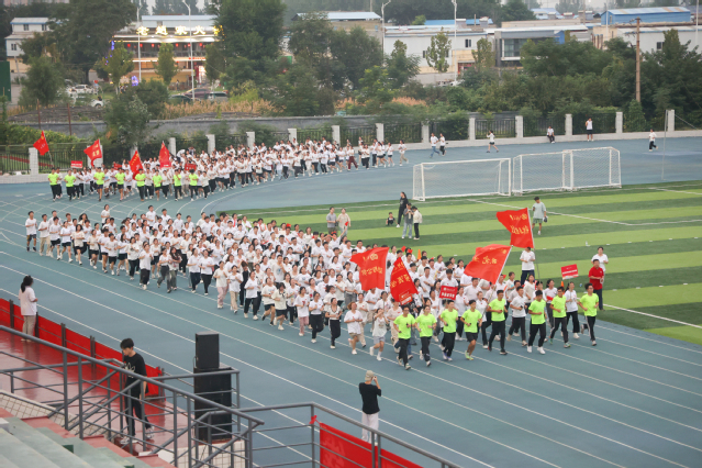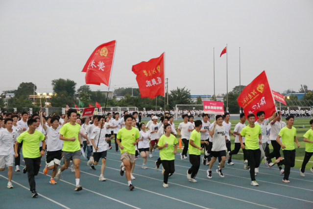 本次活动由校体育运动委员会、校团委、党委学工部、党委研工部主办,体育学院承办。主题为“青春起跑线,梦想共启航”旨在做好新生入学教育,落实立德树人、深化五育并举,帮助新生树立远大理想抱负、坚定爱国爱党信念,养成积极运动、强身健体的良好习惯,以奔跑的姿态迎接崭新的大学生活。共有来自全校各个学院共1200余名2024级本科生、研究生以及辅导员老师参加。开幕式致辞中,聂国兴指出“强健的体魄、阳光的心态,是青年成长成才的重要前提。只有把身心健康牢牢抓在手上,让身体素质更好更强,才能在成长之路上经得住风雨、受得住磨砺、扛得住摔打,书写更加开阔的人生。希望同学们以‘开学第一跑’为新起点,感受运动的魅力,激发内心的活力,积蓄远航的动力。以更加饱满的状态迎接新学期的到来,以更加昂扬的姿态建功新时代!”开幕式结束后,由校领导、老师们组成的第一方阵跑在最前列,由各个学院组成的“厚德”、“博学”、“明德”、“正学”、“倡和”、“出新”六个方阵紧随其后,在领跑员的带领下有序地进行绕场三周的集体跑,同学们迈动着有力的步伐,喊着响亮的口号,每个人都沉浸在运动带来的欢乐中。集体跑结束后由体育学院史晓惠和来自各个学院的学生领操员带领着大家做了拉伸和动感十足的集体排舞运动。随着夜幕降临,在《夜空中最亮的星》的优美旋律中,大家自发地打开手机闪光灯,一瞬间田径场变成了星星的海洋。在主持人的带领下,全体学生向组织参与本次活动的领导老师,领跑、带操同学,医疗安保人员,后勤工作人员等道出一声声“感谢”,同时也感谢勇敢参与本次活动的自己。