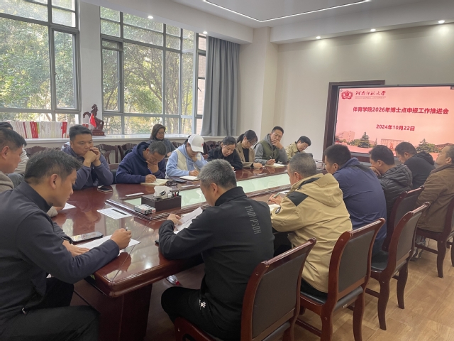 为进一步推进体育学院博士点申报工作,2024年10月22日下午,学院召开新一轮博士点申报推进会,学院院长岳贤锋、院党委书记王允以及学院学术骨干代表参加本次会议,会议由体育学院副院长李玉周主持。