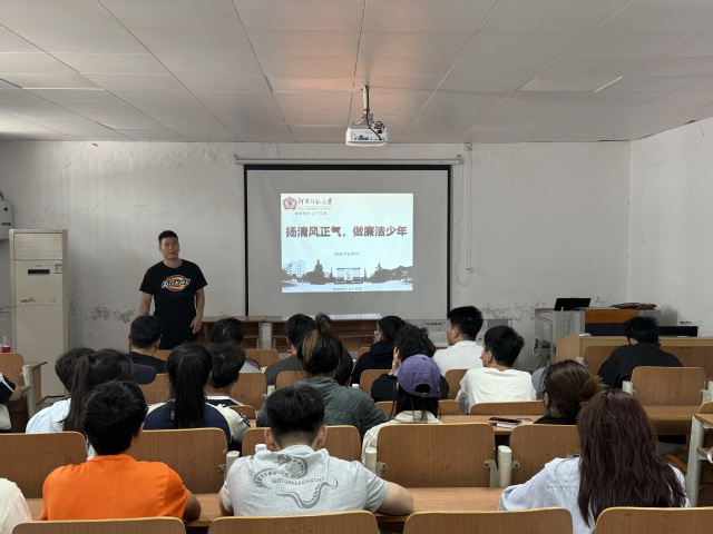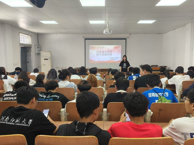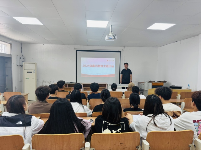 为深入学习贯彻新时代廉洁文化建设要求,引导青年学生筑牢思想防线、涵养清风正气,5月9日中午,2024级全体学生于小白楼电教室组织开展了以“新时代青年的廉洁担当”为主题的廉洁教育班会。本次活动由张远航老师主持。