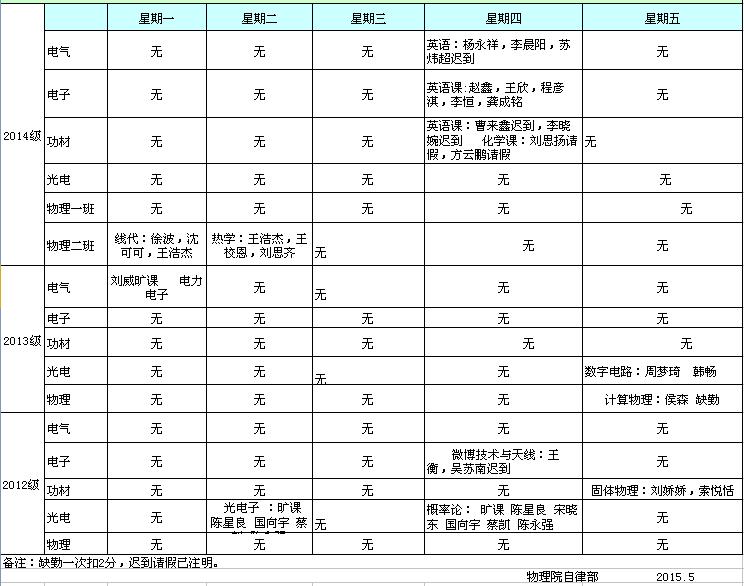 物理与电子工程学院2015年春季第十二周缺勤名单