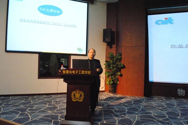 上午10时,在陈书记的主持下,报告会如期开始。陈书记首先对何晟先生做了简介,并结合李克强总理提出的“大众创业”政策对报告会主要内容进行了简单介绍。随后,在何晟董事长的发言中,先对自己的人生经历和工作经历做了简要的说明,与大家分享了他的奋斗和拼搏的过程。接下来,关于创业方面,何先生提出了“为什么创业、怎样创业、在哪里创业、什么时候创业、谁去创业”几个问题。并通过自身工作和创业经历,时下社会背景和多家著名企业的发展情况一一做出详细的解答。他指出:创业都有很大风险,甚至是九死一生的事,但是,一定要敢想,敢做。困难和阻力肯定是会有的,一定要坚持自己的信念,不要放弃,这样才有机会实现自己的梦想。在学生提问环节,对于同学们提出的各种问题,何先生都做出了详细的解答。最后陈书记作总结发言。在一片热烈的掌声中,报告会圆满结束。