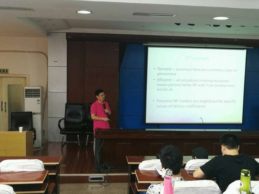 廖益主要以《Probe new physics in neutron and nuclear beta decays》为题,向大家介绍了介绍标准模型(SM)发展的状态以及在中子和核子的β衰变中寻找新物理的理论和实验进展。报告结束后,他与现场师生进行了互动,就大家提出的相关问题,给予了耐心细致的解答。