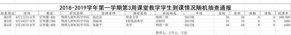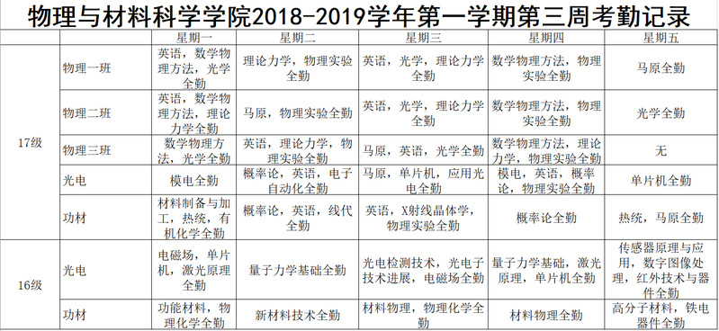 2018-2019学年第一学期第三周考勤记录