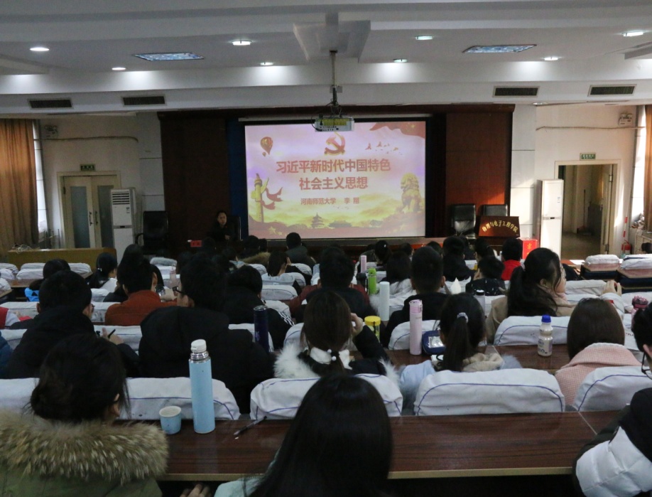 为推动积极分子进一步学习贯彻习近平新时代中国特色社会主义思想新高潮,帮助学生学懂党的理论,切实提高自身政治素质,12月8日下午,我院于物理南楼二楼报告厅举行入党积极分子党课培训。李翔老师主讲专题二“习近平新时代中国特色社会主义思想三十讲”,本次发展的70名入党积极分子集体参加本次党课。