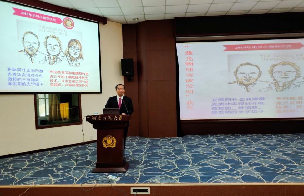 10月25日上午,应我校物理学院邀请,北京大学副校长龚旗煌院士来我校讲学。报告会在物理北楼三楼报告厅举行。我校党委常委、副校长刘玉芳教授、物理学院负责人、教师代表及300余名学生参加了此次报告会。报告会由刘玉芳教授主持。