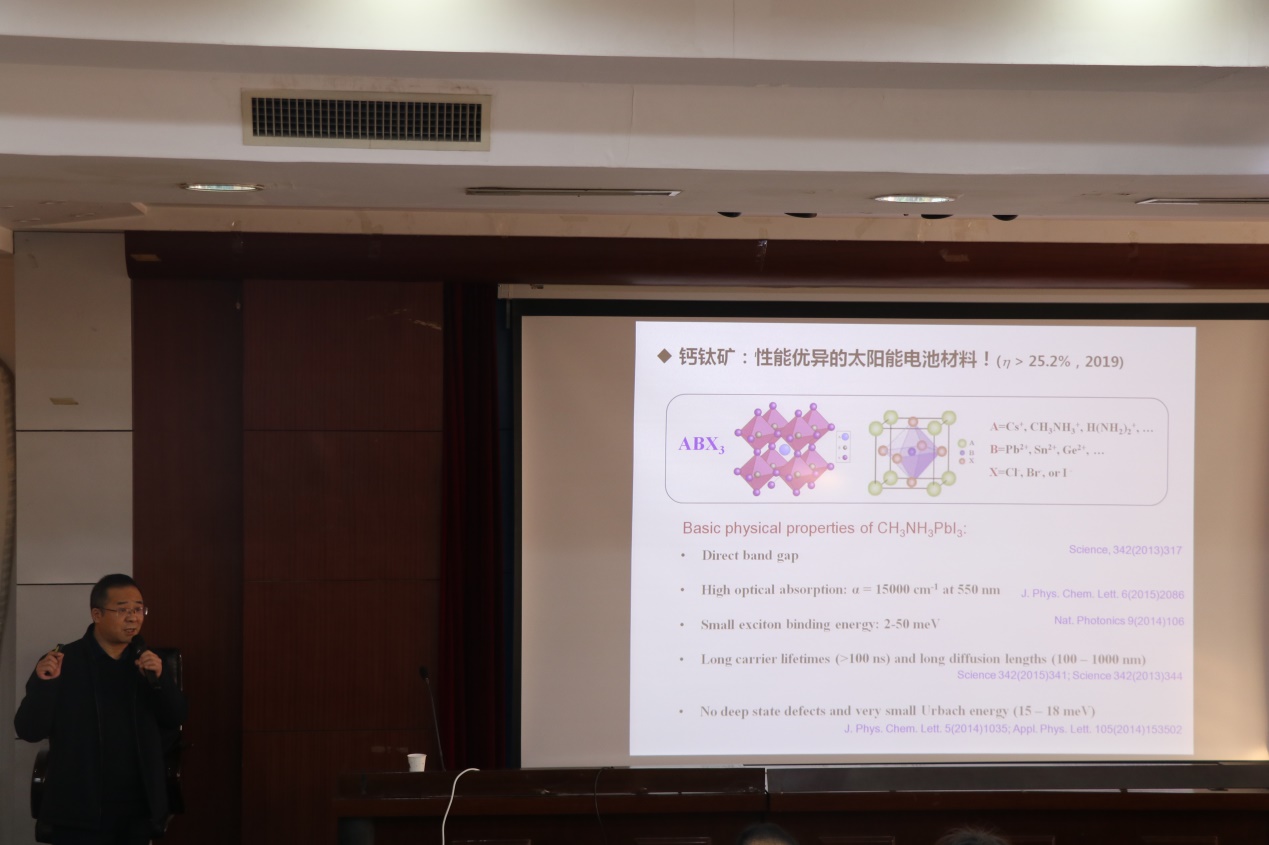 12月7日下午,应我校物理学院邀请,郑州大学李新建教授来我校作了题为“铯铅卤化物钙钛矿纳米晶的掺杂效应”的报告。报告会在物理南楼报告厅举行。各专业师生百余人参加了报告会。