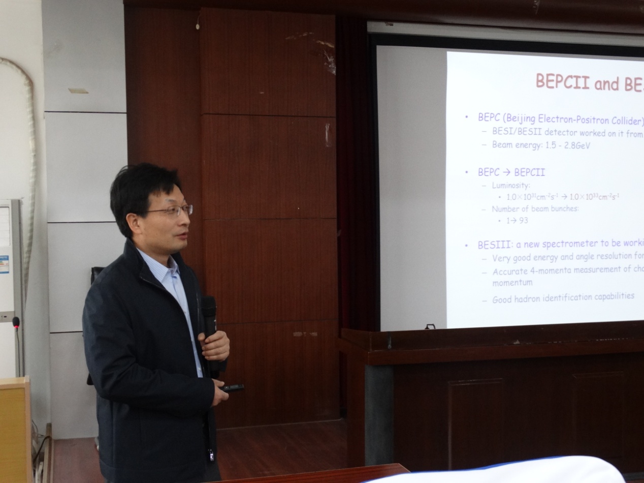 4月6日上午,应物理学院邀请,我校杰出校友——中国科学院高能物理研究所房双世研究员来我校,在物理南楼学术报告厅以“北京谱仪简介”为题作了学术报告,学院师生50余人参加此次报告会。