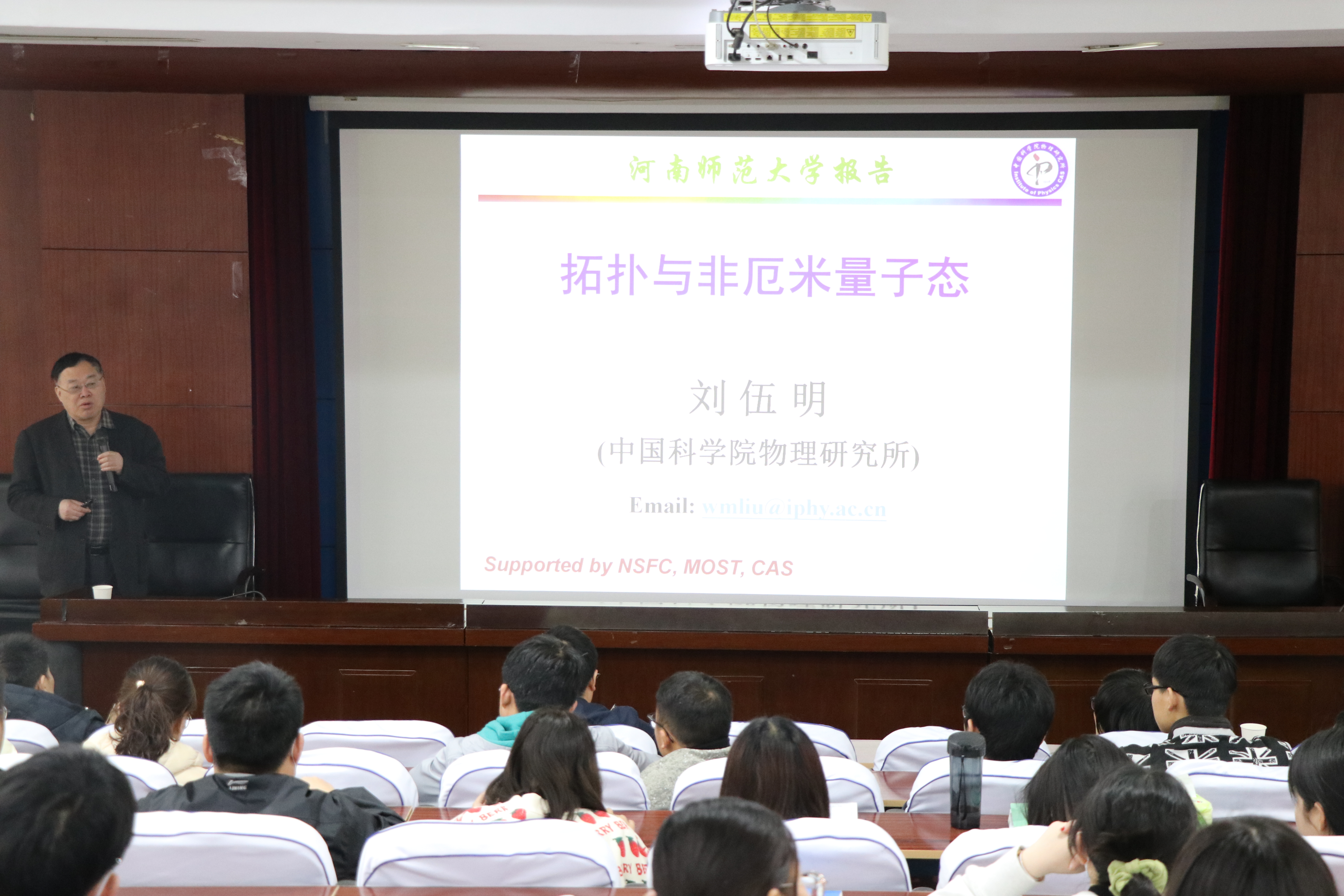 4月2日上午,应我校物理学院邀请,中国科学院物理所研究员刘伍明来我校讲学。报告会在物理南楼二楼学术报告厅举行。物理学院相关专业的师生参加了学术活动。