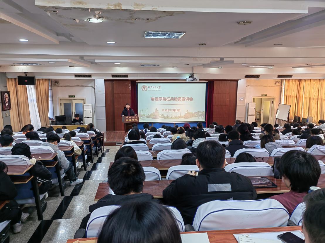 为做好2024届毕业生入伍政策宣传工作,鼓励毕业生积极参军入伍,近期,物理学院在物理南楼报告厅举办了征兵入伍政策宣讲会。