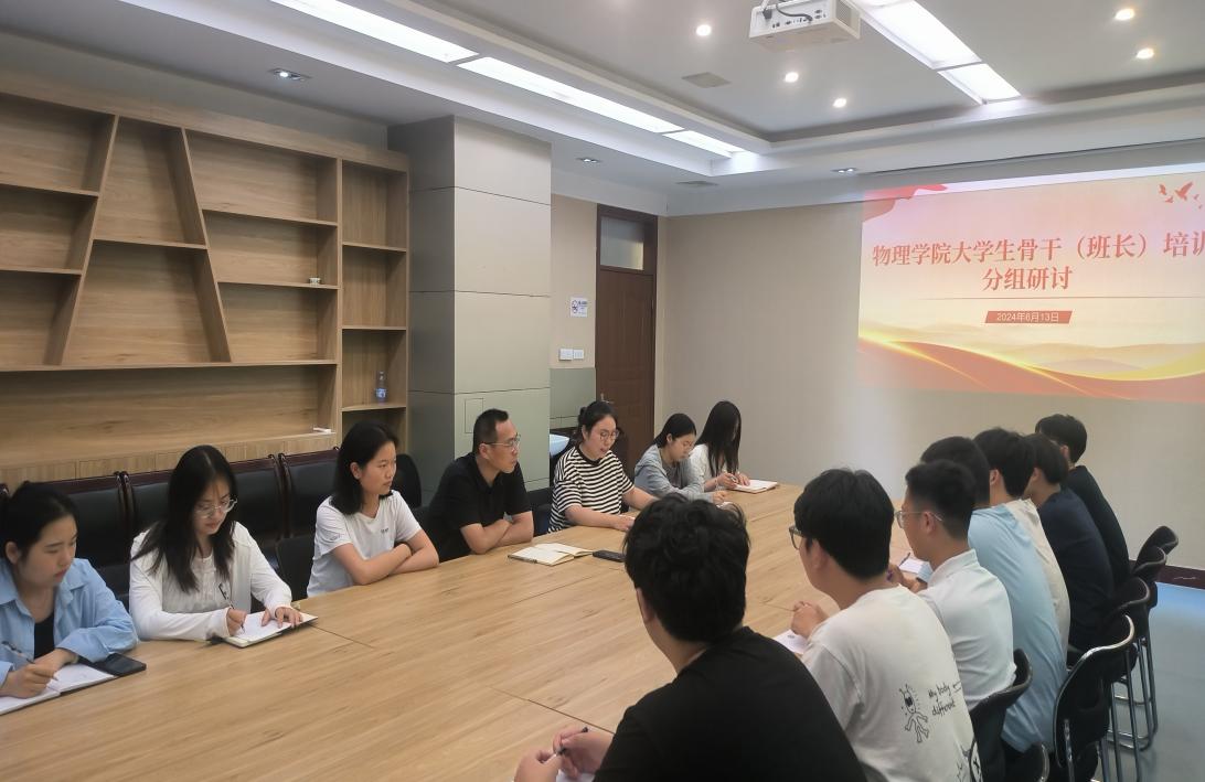 为深入学习贯彻习近平总书记系列重要讲话精神,围绕立德树人根本任务,打造一支能够全面服务、凝聚、引领同学的学生骨干队伍,6月13日,物理学院在物理北楼c103开展大学生骨干(班长)培训分组研讨,学院党委副书记宋艳兵、各年级专兼职辅导员、班长、学生会骨干成员共同参与。