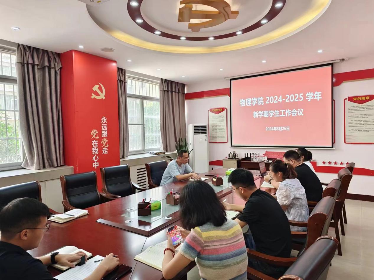 为扎实做好开学各项准备工作,全力推进新学期学生工作高质量开展,8月26日,物理学院于物理北楼会议室召开新学期学生工作会议。物理学院党委副书记宋艳兵及全体专兼职辅导员参加会议。