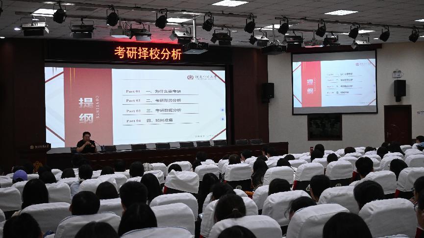 为进一步推动和加强学风建设,帮助学生了解当前考研新形势,明确考研目标,树立考研自信心,营造良好的考研学习氛围。9月12日晚上,物理学院在物理北楼学术报告厅召开考研择校分析报告会。本次报告会邀请物理学院党委组织员、辅导员张浩兴老师主讲,物理学院2022级辅导员程琦、2022级全体本科生参加了报告会。