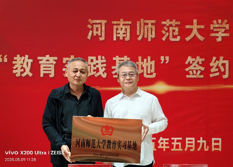 5月9日上午,河南师范大学与平顶山一中新区高级中学“教育实践基地”签约授牌仪式隆重举行。平顶山市教育体育局副局长尹卫东、河南师范大学物理学院党委书记陈明银、平顶山一中新区高级中学集团董事长关朝辉等领导共同见证这一重要时刻。
