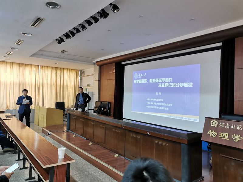 陈刚教授以光学超振荡、超振荡光学器件及非标记超分辨显微研究为题,向师生介绍了其团队在光学超振荡,超分辨成像领域的研究成果。报告结束后,陈刚教授与现场师生进行了互动,就大家提出的相关问题给予了耐心细致的解答。