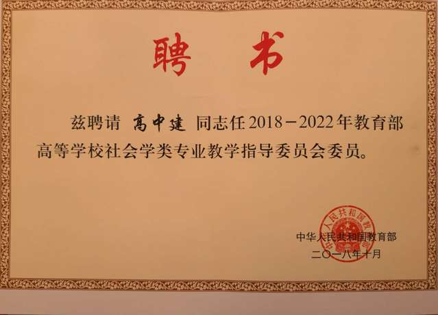 2018年12月15日,2018--2022年教育部社会学类专业教学指导委员会成立暨第一次全体委员会议在中国人民大学召开。中心主任高中建教授应邀参加本次会议并受聘为教育部社会学类专业教学指导委员会委员。