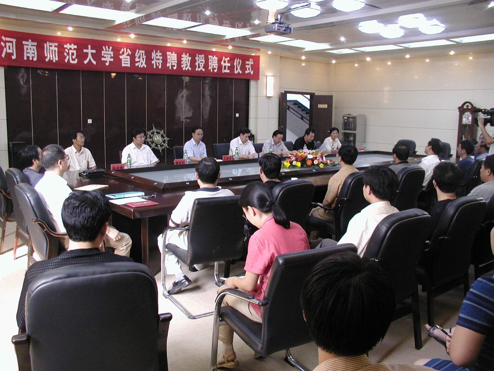 金秋送爽,丹桂飘香,2004年9月10日,恰逢第20个教师节,我校在行政楼第三会议室隆重举行河南师范大学省级特聘教授岗位聘任仪式 ,理论物理学科杨亚东博士从校长王键吉手中接过聘书, 正式成为我校历史上第一个省级特聘教授。