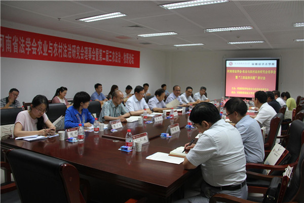 6月17日下午,由河南省法学会农业与农村法治研究会主办,河南财经政法大学民商经济法学院承办的河南省法学会农业与农村法治研究会理事会暨“三农法治问题”研讨会在河南财经政法大学成功举行。河南省法学会党组成员、驻会副会长贾世民,河南师范大学招办主任、河南省法学会农业与农村法治研究会会长黄进才等领导莅临会议,河南财经政法大学纪委书记师维出席会议并致辞。