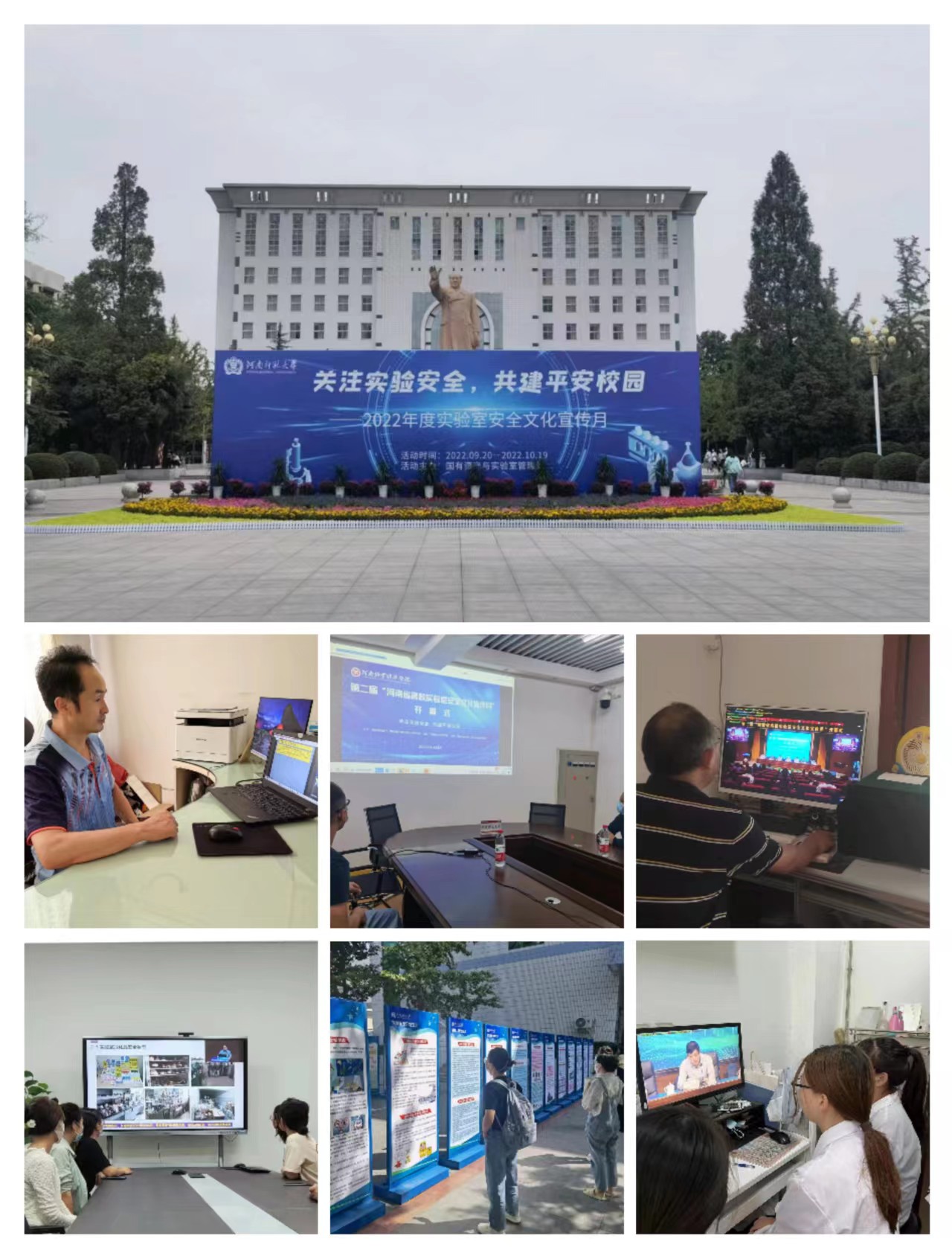 9月22日上午,第二届“河南省高校实验室安全文化宣传月”活动开幕式在河南牧业经济学院举行。在遵守学校各项防疫规定的前提下,国有资产与实验室管理处组织校内各教学、科研单位师生观看开幕式线上直播。