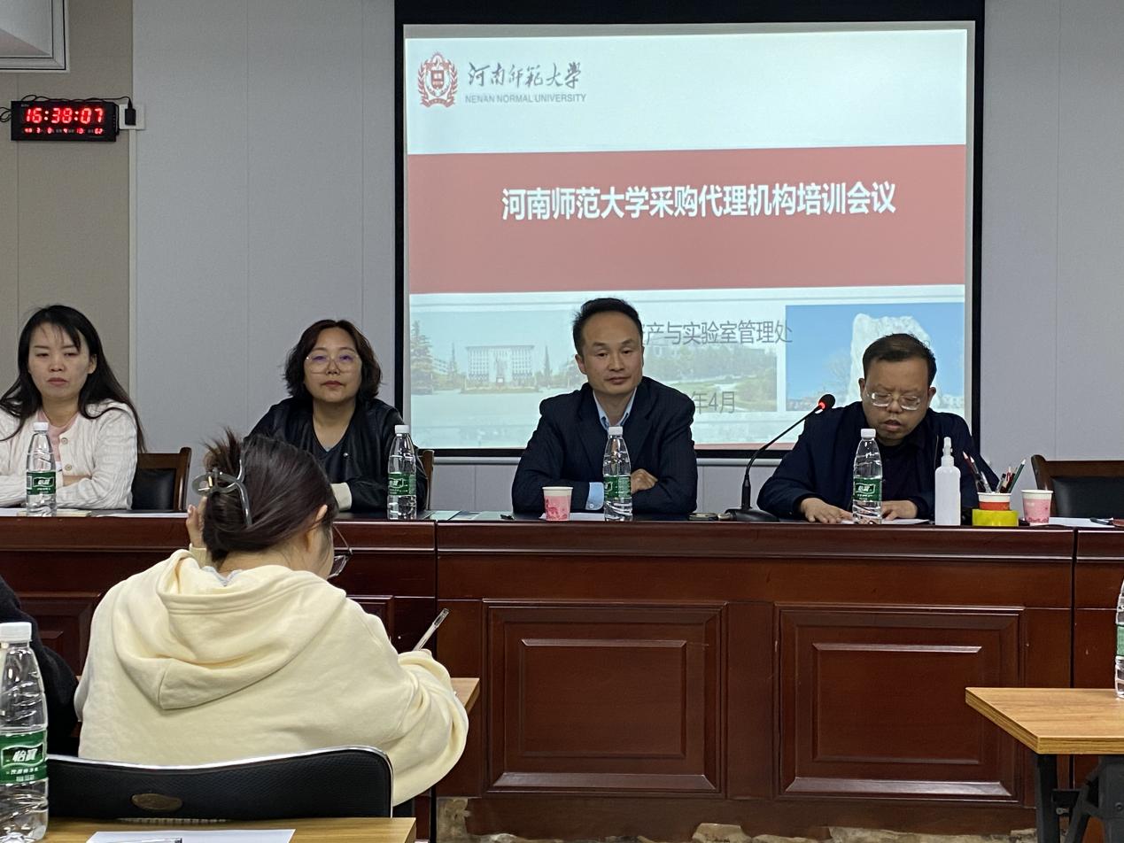 为进一步提升代理机构招标工作管理水平,做好风险防范, 4月27日,国有资产与实验室管理处在国贸招标公司举行了采购代理机构培训会议。国资处处长王志宏、副处长乔俊峰、招标科王文辉、采购科郭玲玲、陈志超和15家代理机构负责人参加,会议由乔俊峰主持。