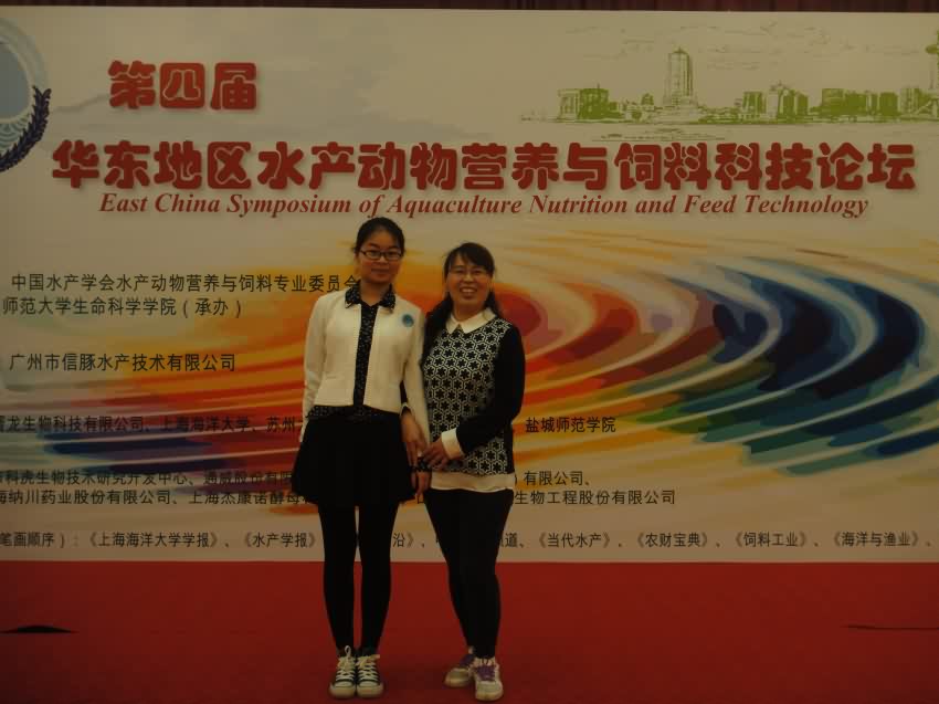2014年3月28日-3月30日,“第四届华东地区水产动物营养与饲料科技论坛” 在上海成功召开,本次会议由中国水产学会水产动物营养与饲料专业委员会主办,华东师范大学生命科学学院和广州市信豚水产技术有限公司联合承办。论坛主题为“水产饲料可持续发展的营养策略与水产品质量安全”。共有来自国内十几所高等院校、研究单位和企业单位的400余名专家、学者和技术人员参会。我院卢荣华博士和研究生郭倩倩参加了此次会议。