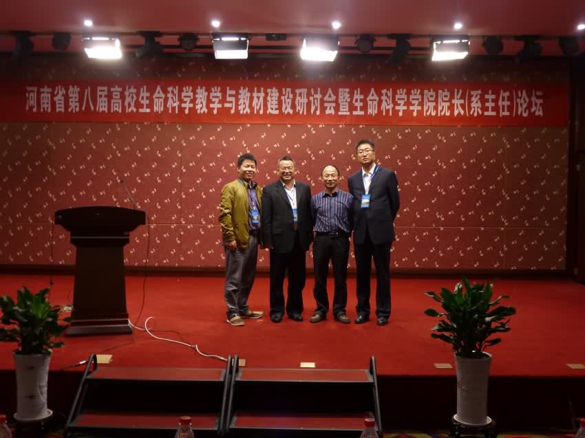 2014年4月23日-4月24日,河南省第八届高等学校生命科学教学与教材建设研讨会暨生命科学学院院长(系主任)论坛在河南省信阳市召开。会议由科学出版社主办、信阳师范学院承办,共有来自省内外27所高校、出版社及企业的139位代表参会。我院彭富旗书记、聂国兴院长、周传江博士、孟晓林博士参加了此次会议。