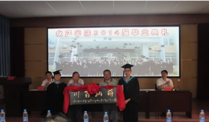 典礼在庄严肃穆的国歌声中拉开序幕。李学军副院长就学院学位评定委员会关于2014届本、硕毕业生学位授予情况做了说明。李保华副书记宣读省级优秀毕业生名单和校级优秀毕业生名单。在各位领导为优秀毕业生颁奖后,毕业生代表向学院赠送了“海纳百川”的牌匾。