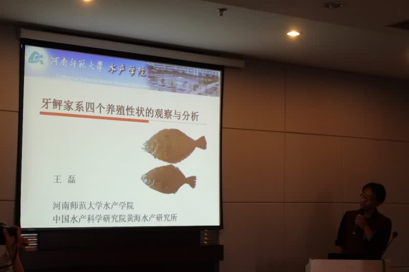 会议开幕式由华中农业大学水产学院院长王卫民教授主持,华中农业大学李名家副书记、中国水产学会理事长贾晓平研究员和中国水产学会水产生物技术专业委员会主任陈松林研究员先后在开幕式上致辞。开幕式后,中国科学院水生生物研究所桂建芳院士、中国海洋大学包振民教授、湖南师范大学刘少军教授、中国水产科学研究院黄海水产研究所陈松林研究员、中国水产科学研究院黑龙江水产研究所孙效文研究员和海南大学王爱民教授先后做了6场精彩的大会主题报告。大会以“基因组时代的水产种业”为主题,分别以“水产养殖生物基因组资源发掘”、“水产养殖生物重要性状遗传基础”和“水产养殖生物遗传改良及水产种业相关技术”为议题展开学术交流。在为期两天的学术报告和交流研讨中,来自国外内的专家和研究生围绕三个议题共作了84场报告。我院王磊博士作了“牙鲆家系四个养殖性状的观察与分析”的报告。