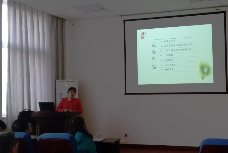 为进一步贯彻执行学校财务管理制度,方便教职工日常预约,提高报账效率,12月2日下午,财务处徐燕鹏处长、张晓玲副处长及会计科、计划财务管理科、出纳科等负责人莅临我院,就财务制度与工作流程举办了说明会。我院全体教职工参加了说明会,会议由聂国兴院长主持。