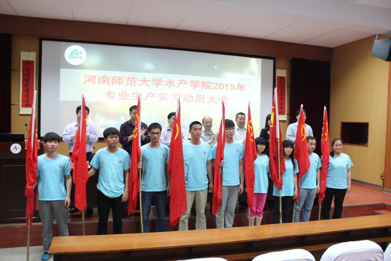 动员会上,李学军副院长首先回顾了2014年的情况,并对2015年的实习地点、实习方案和实习成绩评定作了详细说明;李保华副书记宣读了实习小组领导名单,实习分组名单和实习纪律;随后,与会领导为实习队举行了院旗和团旗授旗仪式并合影留念;上海泓宝实习队队长,谢帝芝老师、林耀辉同学分别代表指导老师和实习生发言。