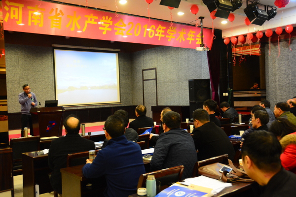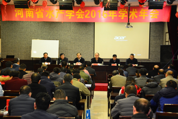 为加强河南省水产科技人员学术交流,提升河南省现代渔业建设和发展水平,12月16至17日,由河南省水产学会主办、我院承办的河南省水产学会2016年学术年会在我院召开。校工会主席岳杰勇,河南省农业厅水产局副局长王新岭,科技处处长郭海明,我院党总支书记侯进怀,河南省水产学会理事长、我院院长聂国兴以及来自全省涉水产高校及市(县)水产技术研究和推广部门水产学会会员等120余人参加了会议。开幕式由河南省水产学会副理事长、河南省水产科学研究院院长李治勋主持。