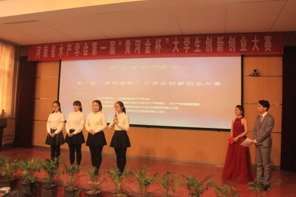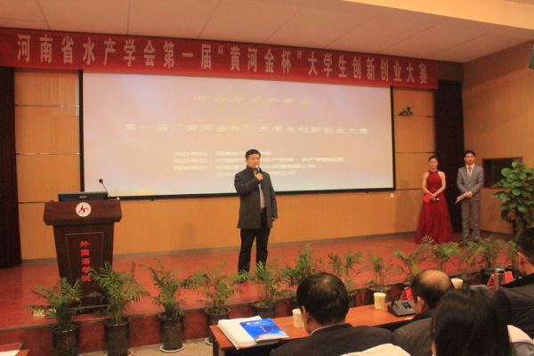 12月18日上午,由河南省水产学会主办、我院承办的河南省水产学会第一届“黄河金杯”大学生创新创业大赛在外国语学院报告厅举办。校工会主席岳杰勇,河南省水产学会副理事长、河南省水产科学研究院院长李治勋,河南省水产学会理事长、我院院长聂国兴,河南省水产学会秘书长、科技处副处长孔祥会等莅临现场。大赛开幕式由河南省水产学会副秘书长、水产技术推广站副站长李同国主持。