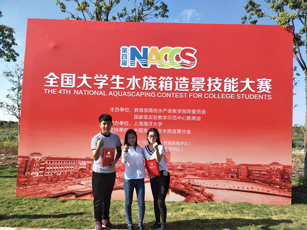 10月5日至10月8日,由教育部高校水产类教学指导委员会和国家实验教学示范中心联席会主办,上海海洋大学承办的第四届全国大学生水族箱造景技能大赛在上海海洋大学临港校区举办。来自全国29所高校,99支代表队的200余名水族造景选手参加了比赛。我校水族造景队参加了中缸石景组和小缸石景组的比赛,均喜获第二名。