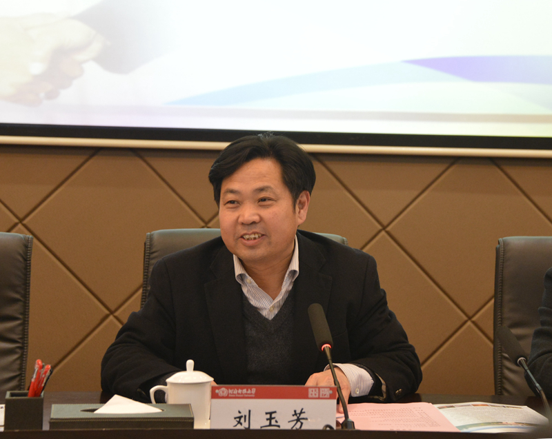 刘玉芳代表学校对来宾表示热烈欢迎,他简要介绍了我校的历史沿革、学科建设、科技创新和人才培养等情况,希望今后两校持续加强沟通,拓展合作领域,提升合作层次,合力破解发展难题,携手共创美好未来。