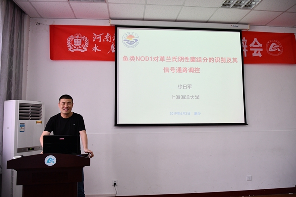 徐田军教授作了题为“鱼类NOD1对革兰氏阴性细菌组份的识别及信号通路调控”的学术报告。首先介绍了哺乳动物中TLR4识别LPS的信号通路,接着重点介绍了鱼体中NOD1识别革兰氏阴性菌LPS和iE-DAP的发现过程及信号通路,miRNA-144/217对NOD1的转录后水平调控和对NF-κB炎症通路的调控。报告结束后,徐田军教授针对水产动物免疫调控的相关问题与水产动物医学团队教师和博士研究生进行了座谈。