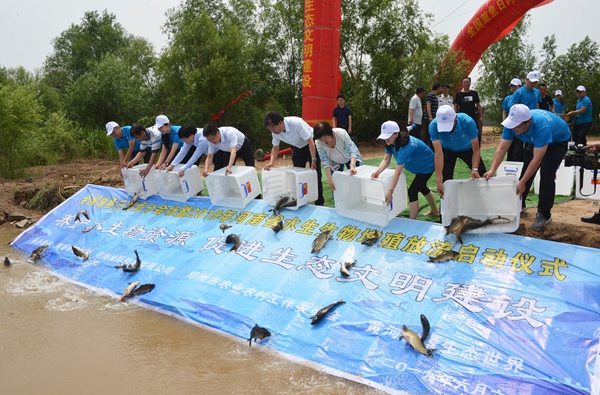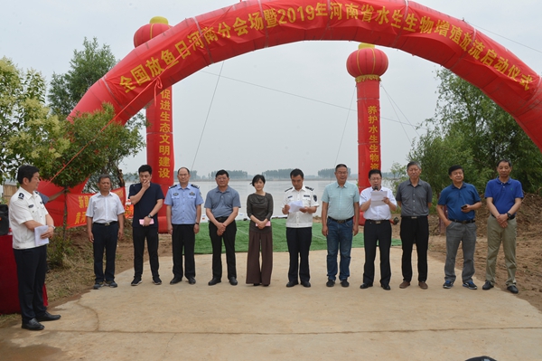 6月6日上午,由我院承办的全国放鱼日河南分会场暨2019年河南省水生生物增殖放流启动仪式在黄河富景生态世界举行。校党委常委、副校长马治军出席并讲话,马治军指出,“黄河是中华民族世世代代赖以生存的“母亲河”,是中华民族的象征,保护黄河是我们当代人义不容辞的责任和使命。黄河鱼类的人工增殖放流,对补充和恢复黄河水域鱼类种质资源,推动黄河水生生物多样性保护和改善黄河渔业生态环境具有积极作用”。国家濒危物种进出口管理办公室处长卢卫民,河南省农业农村厅党组成员、副厅长赵耕,郑州市政协副主席李新有,河南省河长制办公室副处长邓学文,河南省公安厅食药环犯罪侦查总队处长赵向阳,河南省林业局副处长张晓,河南城际铁路有限公司指挥长杨学芳及我校宣传部部长聂立清、科技处处长郭海明等出席启动仪式。我院党总支书记赵有军、副院长李学军及师生代表和志愿者近100人参加了启动仪式。启动仪式由河南省农业农村厅水产局局长张西瑞主持。