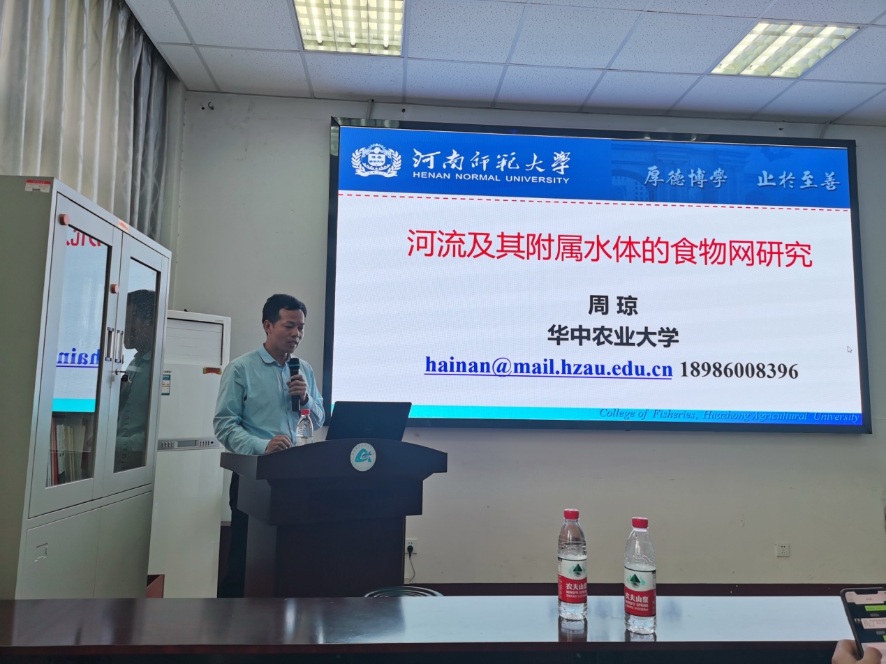 5月24日下午16:30-18:00,应我院邀请,华中农业大学水产学院周琼教授在我院水产楼202会议室作了题为“河流及其附属水体的食物网研究”的学术报告。学院教师、研究生和部分本科生共计70余人聆听报告会,会议由水产学院副院长李学军主持。